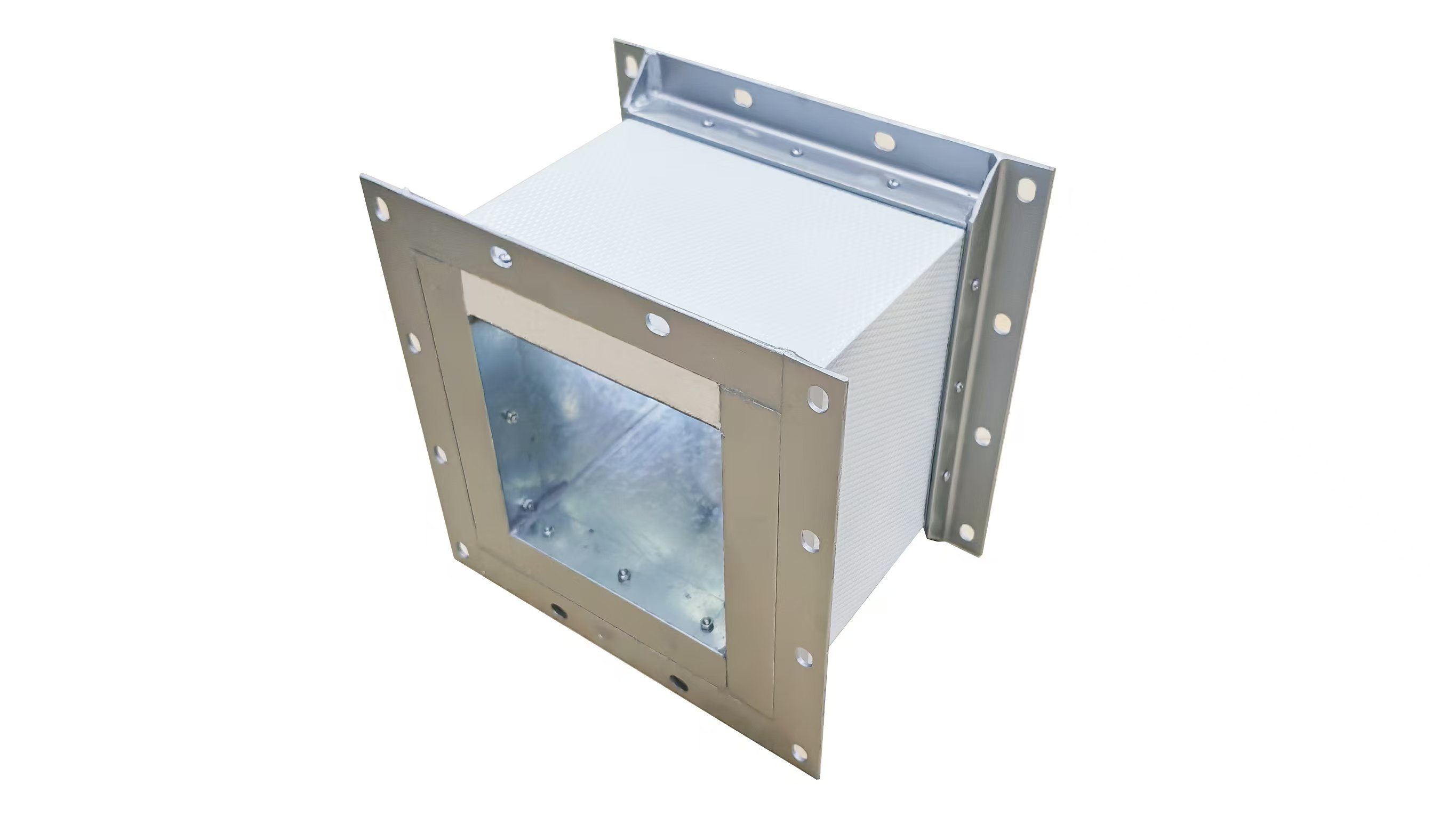 產品結構:外層:傳統鍍鋅鋼板,共板法蘭連接內襯層:高密度離心無甲醛白色玻璃纖維板(由于無甲醛環保玻璃纖維直徑特別細小于3微米,風管的保溫及吸聲效果較之普通玻璃棉更好;不含甲醛,氨苯等有毒有害物質,改善工作環境,不管在玻璃棉加工使用中,還是安裝使用后都不會釋放甲醛;燃燒等級為A級不燃;導熱系數低,在常溫下,導熱系數小于等于0.033W/m·K,保溫性能好;高憎水,不吸收水分,不發霉,有效保持氣流溫度......